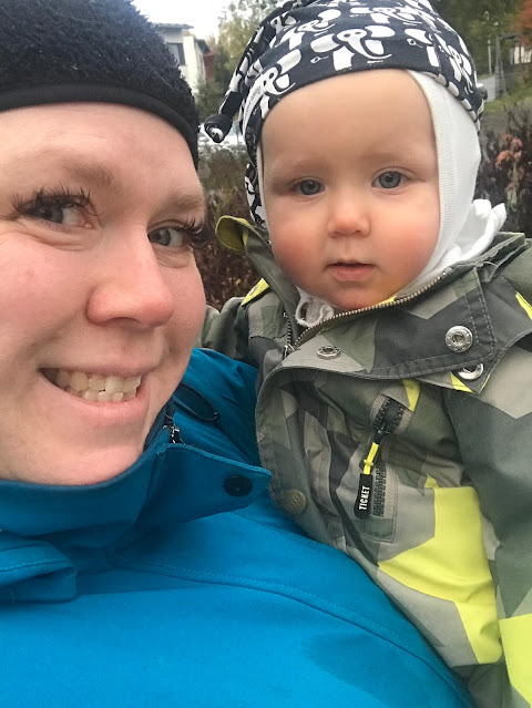 Positiivisina juttuina: Kuopus on ollut hoidossa 11kk nyt, ensin 8kk mummohoidossa ja sittemmin lokakuusta asti päiväkodissa. Syksy on mennyt sairastellessa kiitos päiväkotiarjen. Yöt ovat edelleen repaleisia ja pikkuhiljaa lopettelen nyt imetystä. L on varsin hauskassa iässä: Hänellä on monenlaista juttua jo, sanavarasto menee jo sadoissa sanoissa, oppiminen on päivittäistä ja parin sanan lauseita kuten 'Ikkä tulee' tai 'Kato ämpäri' tai 'Mennään ulos" on myös alkanut tulla. Samalla hän on melkomoinen riiviö ja tekee kaikkensa saadakseen huomiota perheen isommilta ihmisiltä. Hakkaaminen, heittely ja pureminen ovat niitä turhautumisen merkkejä kun isommat eivät jaksaisi kokoaikaa hänen kanssaan leikkiä.